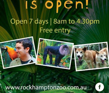 Rockhampton Zoo is FREE and open everyday from 8am to 4.30pm (except Christmas Day).