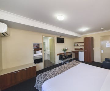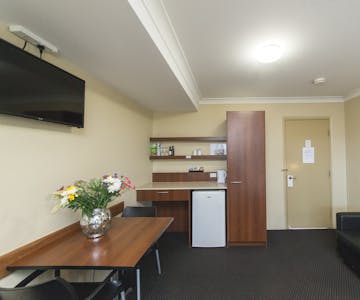 Each room has a dining setting and comfortable seating area plus Free WiFi access and Free onsite car parking.