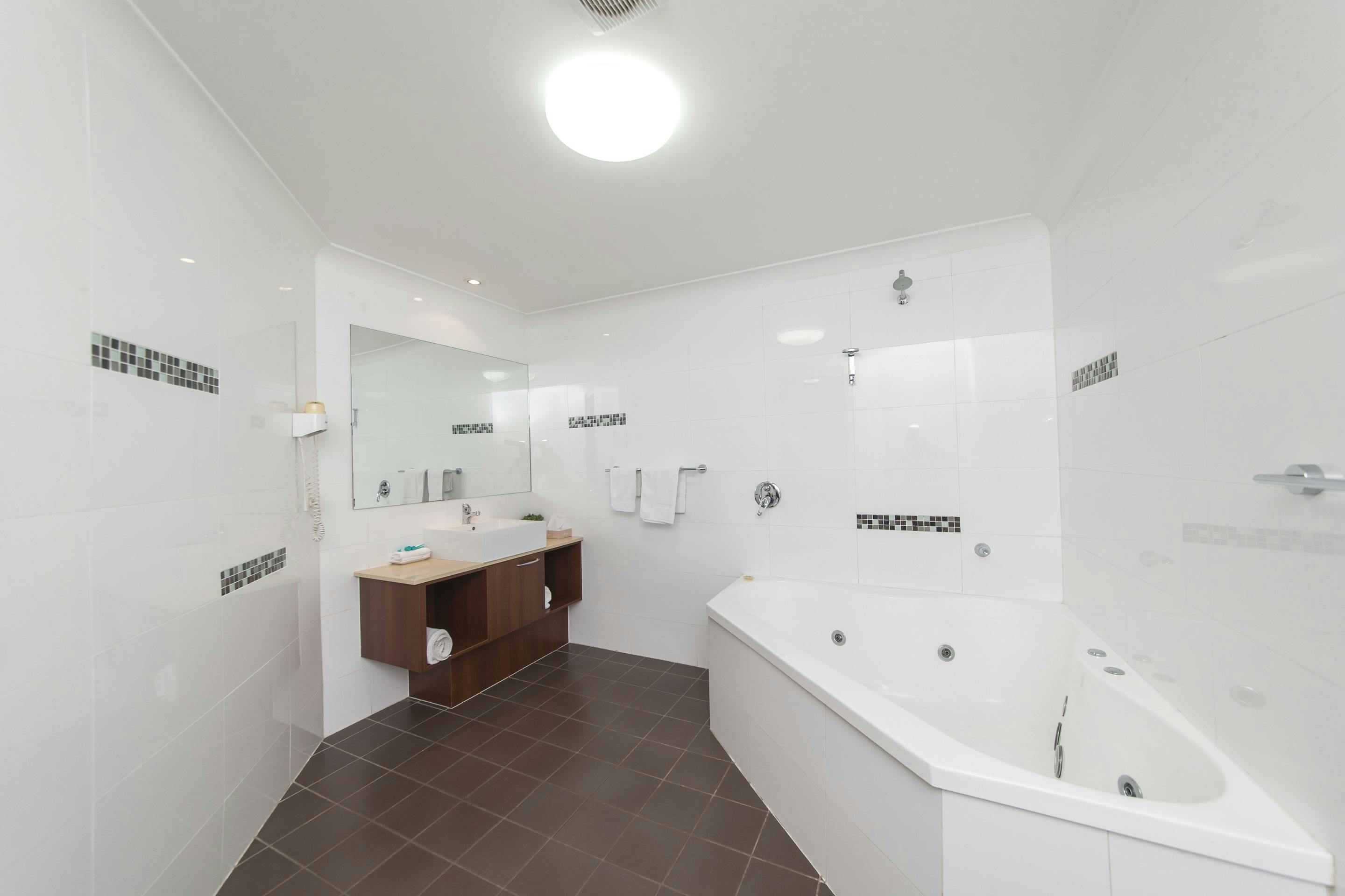 Relax, unwind and refresh in the luxurious corner spa bath, or rest in the comfortable king bed.