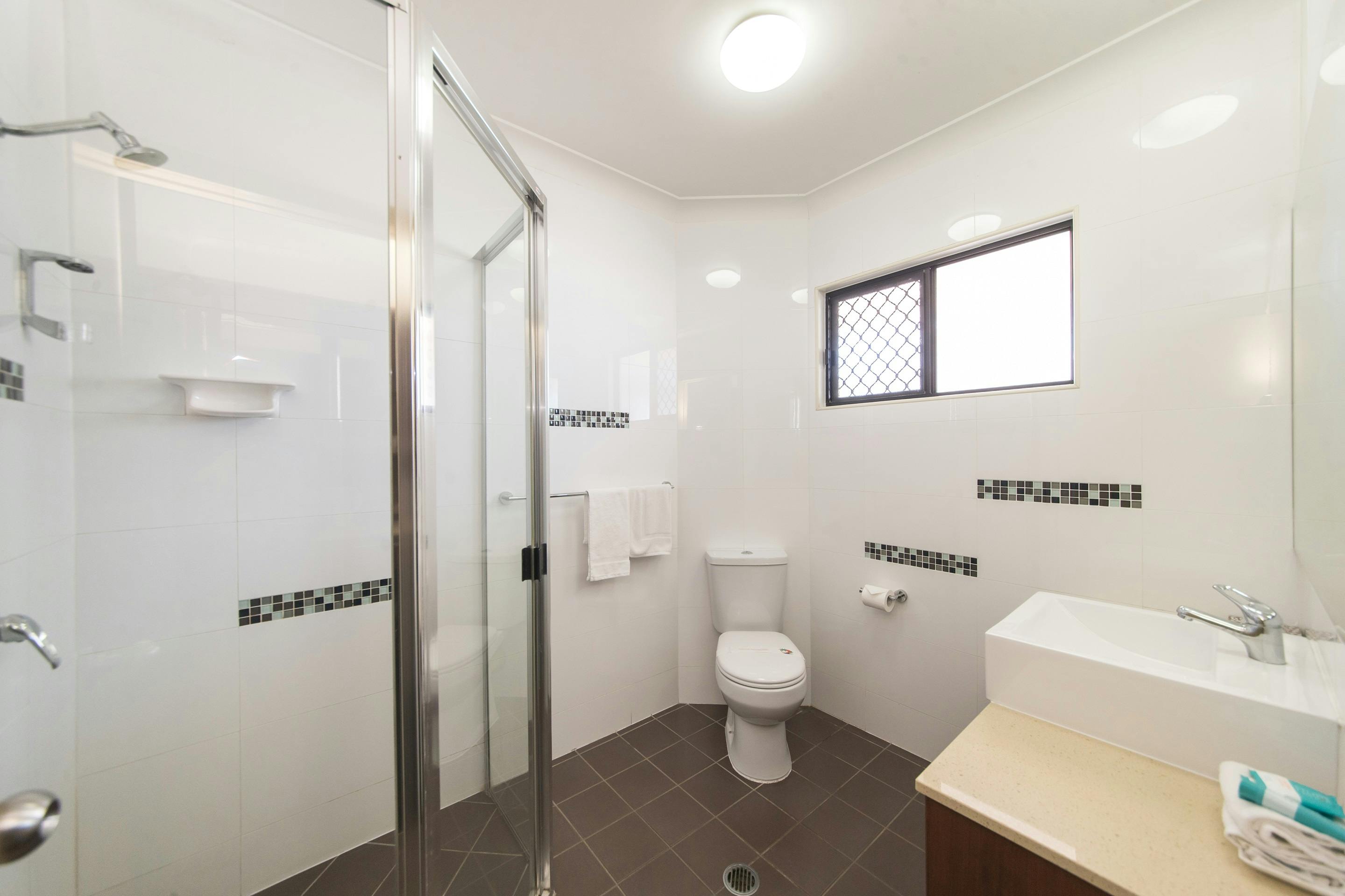 The Queen Quad features an en suite bathroom with walk in shower, dining setting, air-conditioning and screened windows which open.